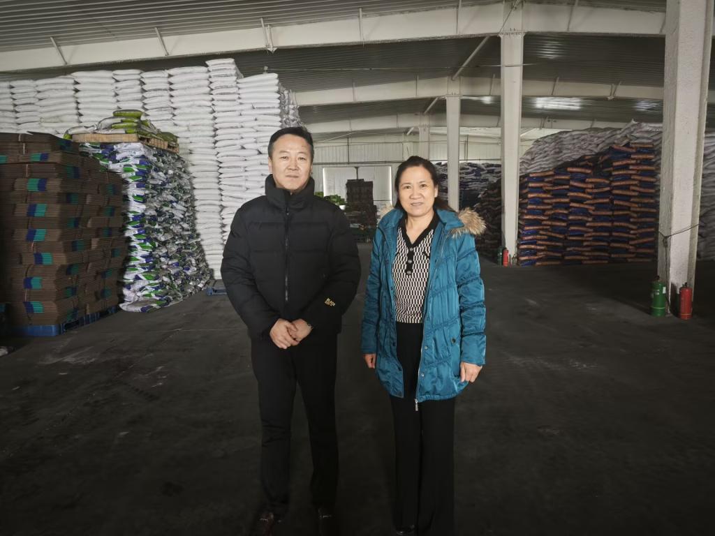 在厂区内,万素梅在王新刚员工的陪同下,深入仓储库房,详细考察了企业的运营情况。王新刚员工逐一介绍了公司当前的主打产品,涵盖复合肥、水溶肥、生物有机肥等多个品类,并讲解了各类肥料的特点、适用范围及市场反馈。看着宽敞整洁的厂区、堆放整齐的成品,万素梅对企业在农业服务方面取得的成就表示高度赞赏。