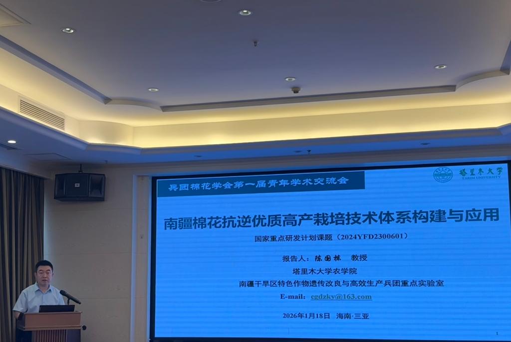 2026年1月17日至19日,新疆生产建设兵团棉花学会第一届青年学术交流会在海南三亚举行。会议以“创新驱动·绿色发展——青年科技赋能兵团棉花产业未来”为主题,吸引了国内棉花研究领域的众多青年科技工作者与专家学者。公司万素梅教授受邀担任本次会议特邀专家评委,公司陈国栋教授、曹楠副教授参会并分别作专题学术报告。