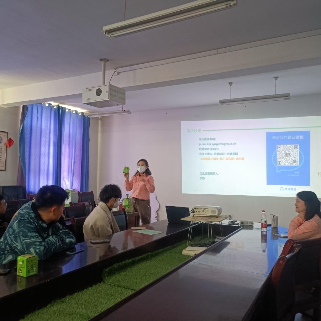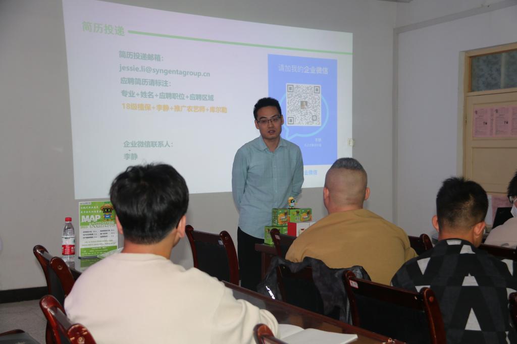 公司优秀员工、中化现代农业有限公司经理唐廉分享了自己的经历以及对同学们提出了一些建议,在有奖回答环节,同学们踊跃回答主持人提出的问题。