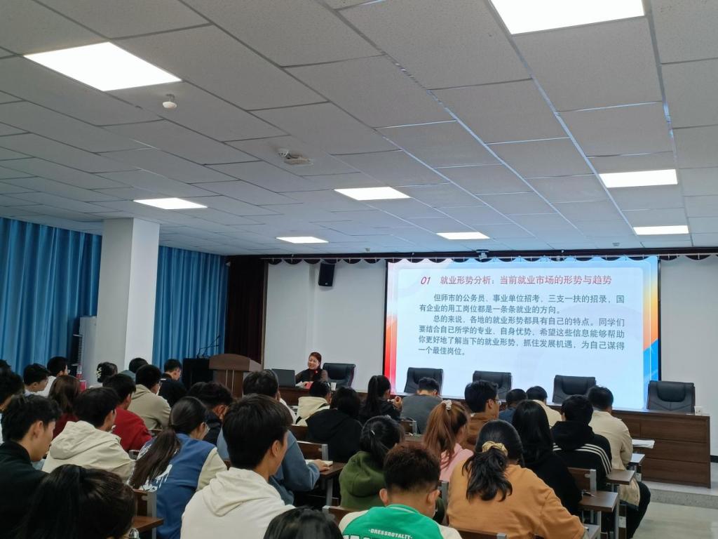 为提升公司就业创业工作服务水平,提高员工创新创业能力,促进老员工高质量充分就业。11月1日下午,公司邀请第一师阿拉尔市公共就业和人才服务局副局长丁茹、人力资源市场科科长镐冬梅、人力综合科王婧在农科楼225教室开展就业创业政策宣讲活动。宣讲会由公司员工办公室主任李亚鹏主持,80余名员工代表参会。会后,参会员工代表在班级内进行宣讲,实现了就业创业政策的全院覆盖。