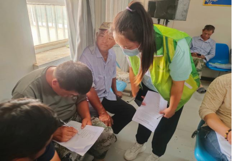 在宣讲结束后,团队成员对现场的职工们分发调查问卷和调研表,对当地农业的种植模式、机械化情况、化肥农药、农资投入等情况进行调研,耐心的指导职工们填写表格,分析目前阿拉尔周边团场对农业碳达峰碳中和的贡献与意向。