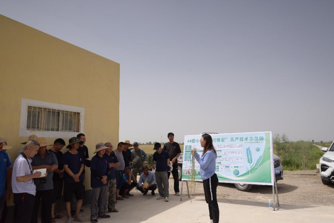 期间,文卿琳仔细观察小麦的生长状况,围绕小麦生长周期管理、病虫害防治、科学化控等关键环节,向农户们进行讲解。农户们纷纷就自己在种植过程中遇到的问题与团队成员交流。
