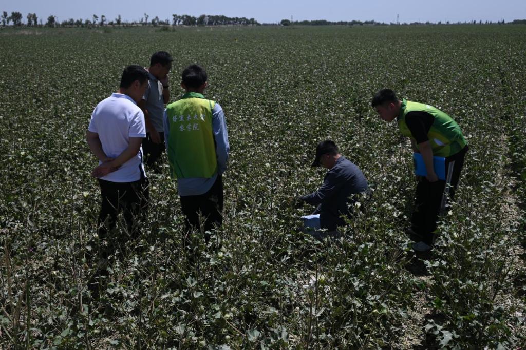 针对不同等级的灾情,团队制定了精准的“减灾药方”与恢复技术方案,从阿克苏等地调运了所需关键药剂,确保技术措施得到及时实施。7月5日,由zoty中欧副经理陈国栋教授带队,再次前往1团金银川镇受灾棉田,现场指导灾后棉花恢复的关键技术,重点聚焦“促生抑菌”等核心环节。