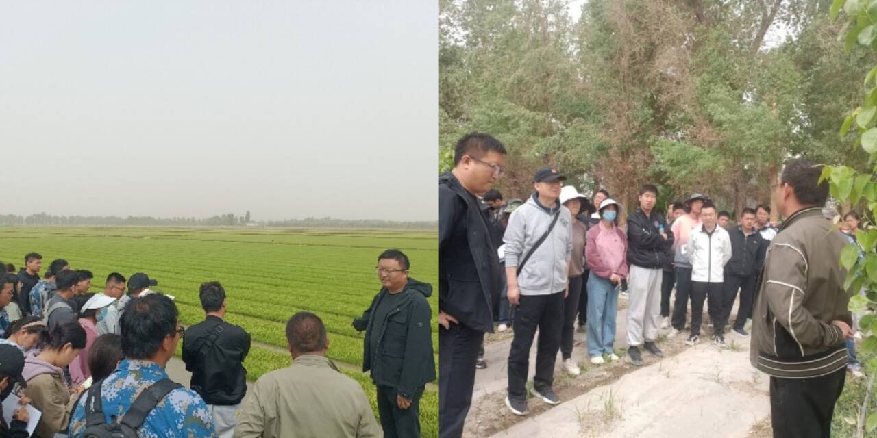 在塔大农学2009届毕业生、第一师十三团十三连书记杨玉林的带领下,我们来到十三团红景辣椒合作社的辣椒种植现场、棉花干播湿出封土现场、茴香套种玉米地、水稻育秧田、玉露香梨套种中草药防风地,小麦种植地等,通过实地查看和调研,详细了解不同作物的种植模式、田间管理技术以及当前农业生产中存在的重要问题。在各个参观地点,师生与相关负责人进行深入沟通交流和探讨。