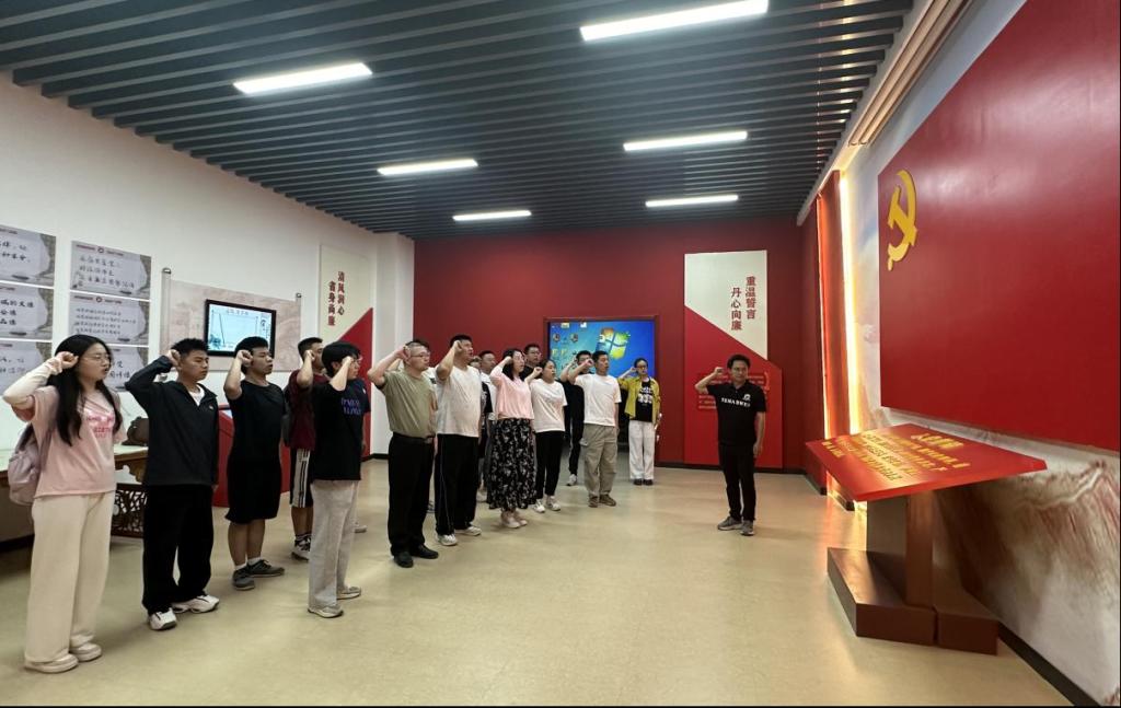 展馆筹建于2015年,总展陈面积为888平方米,是兵团第一家免费向党员干部开放的廉政主题教育馆。进入馆内映入眼帘的是“塔河清风 廉润初心”八个大字,每个字都有不同的含义。主要记录的是习近平总书记对于纪检工作提出的要求,习近平总书记在十九届中纪委二次全会上指出,我们各级纪检监察机关要以更高的标准更严的纪律来要求自己,确保党和人民赋予的权力不被滥用,惩恶扬善。大家有感道要做一个清正廉洁的人,反对贪污贿赂。参观结束后支部全体党员和预备党员面对党旗重温入党誓词,进行了庄严的宣誓。