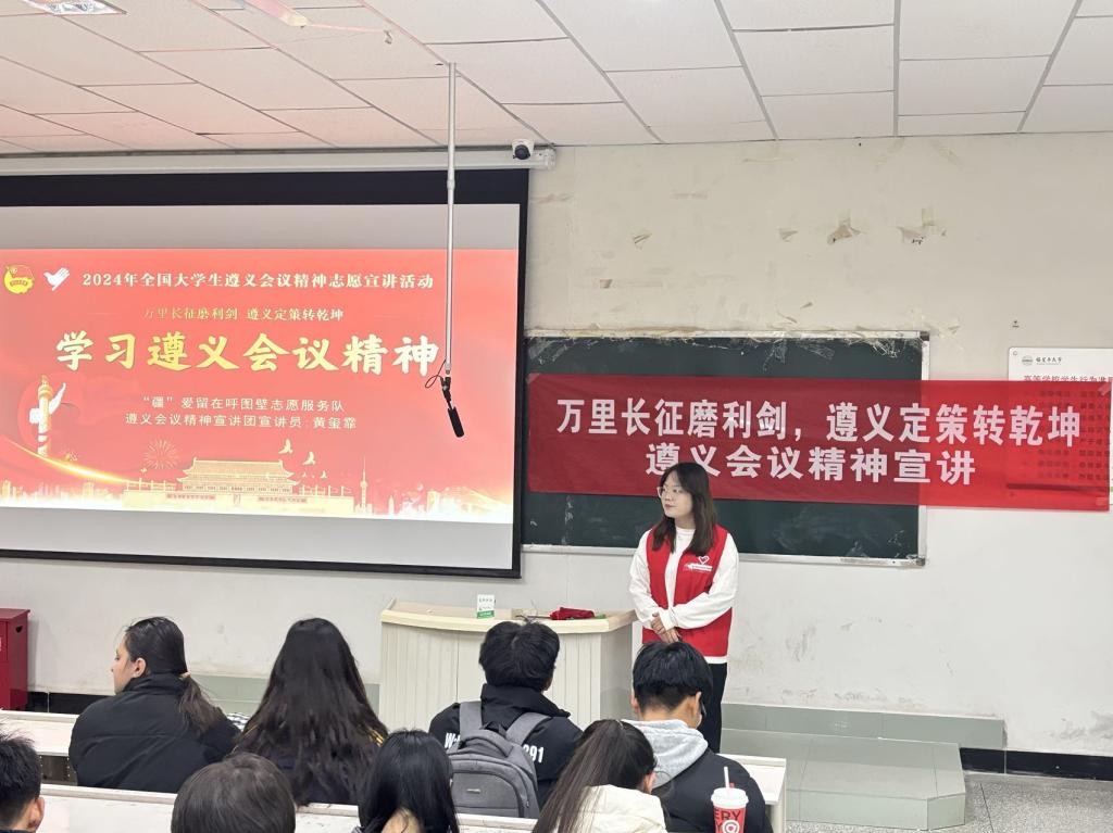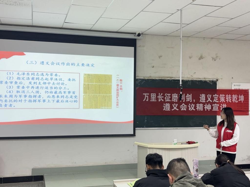 今年是遵义会议召开90周年。为使广大青年学子更加深入地了解了遵义会议的历史地位和遵义会议精神的重要内涵,激发大家的爱党爱国情怀和奋斗精神,2024年11月27日zoty中欧农学2023级4班团支部携手2024年全国老员工遵义会议精神志愿宣讲团“‘疆’爱留在呼图壁志愿服务队遵义会议精神宣讲团”开展了以《万里长征磨利剑 遵义定策转乾坤——学习遵义会议精神》为主题的遵义会议精神宣讲。
