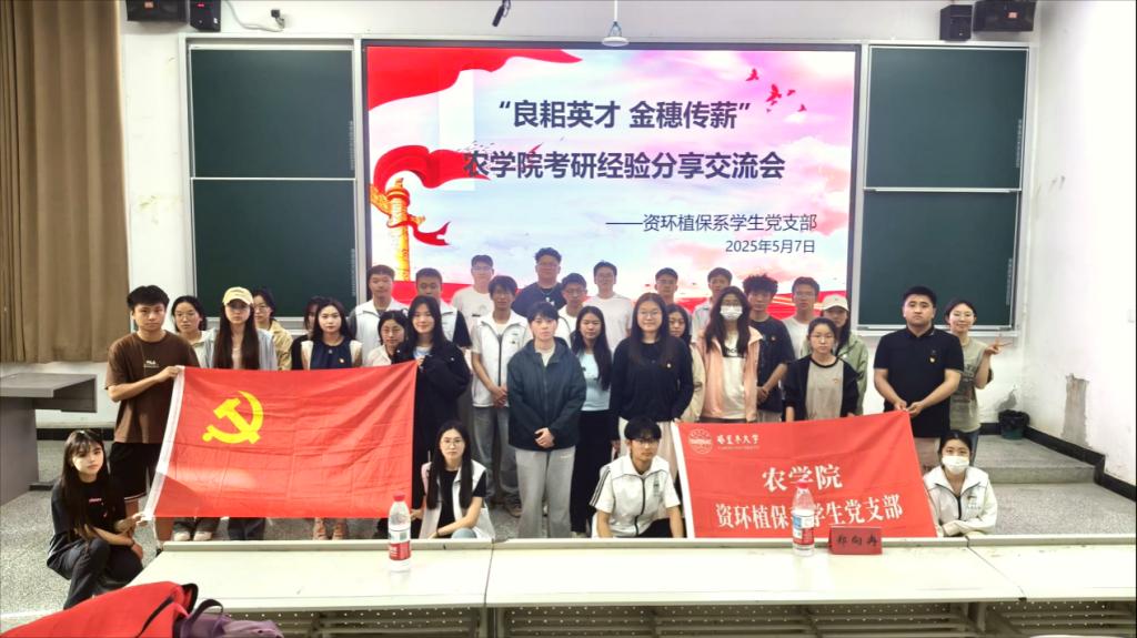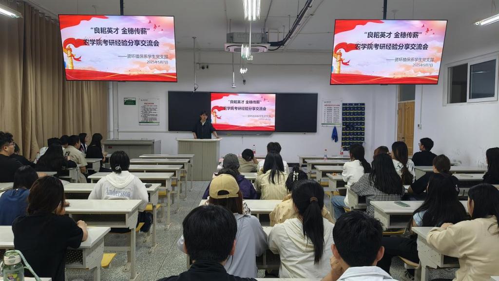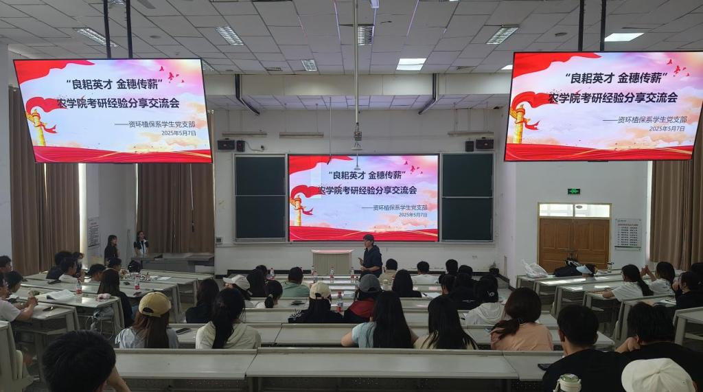 5月7日下午,资环植保系员工党支部于综合楼阶教3开展“良耜英才 金穗传薪”考研分享交流会。此次大会由辅导员郑向冉、党员沈悦主持,支部成员宋文博、谢亿帆等十四名考研上岸毕业生主讲。支部积极分子及相关专业员工充分发挥党员的先锋模范作用,积极响应“我为群众办实事”的号召,帮助农科学子精准锚定考研方向、高效规划备考路径。