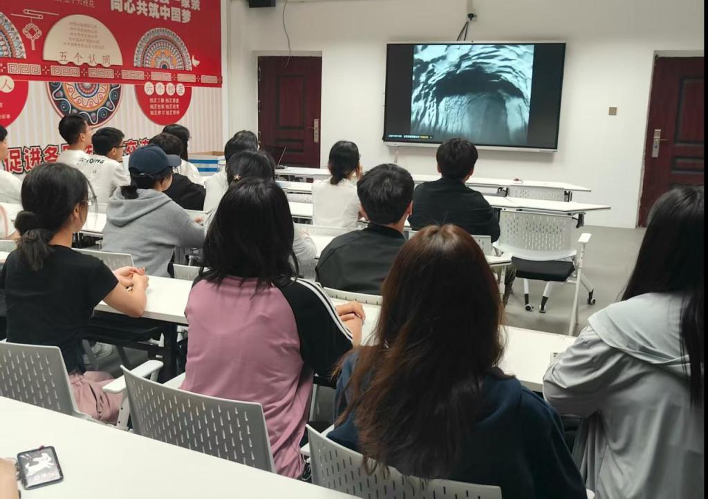 本次活动选择抗日战争题材影片《地道战》作为观影内容。《地道战》以抗日战争时期冀中抗日根据地军民为背景,讲述他们依托地道工事,从隐蔽防御到主动出击,巧妙抗击日寇、粉碎敌人“扫荡”的故事,展现了军民团结一心、智慧抗敌的精神。在观影过程中,大家全神贯注,跟随影片重温抗日战争时期的峥嵘岁月,深刻感受革命先辈为国家独立、民族解放所付出的艰辛与牺牲。
