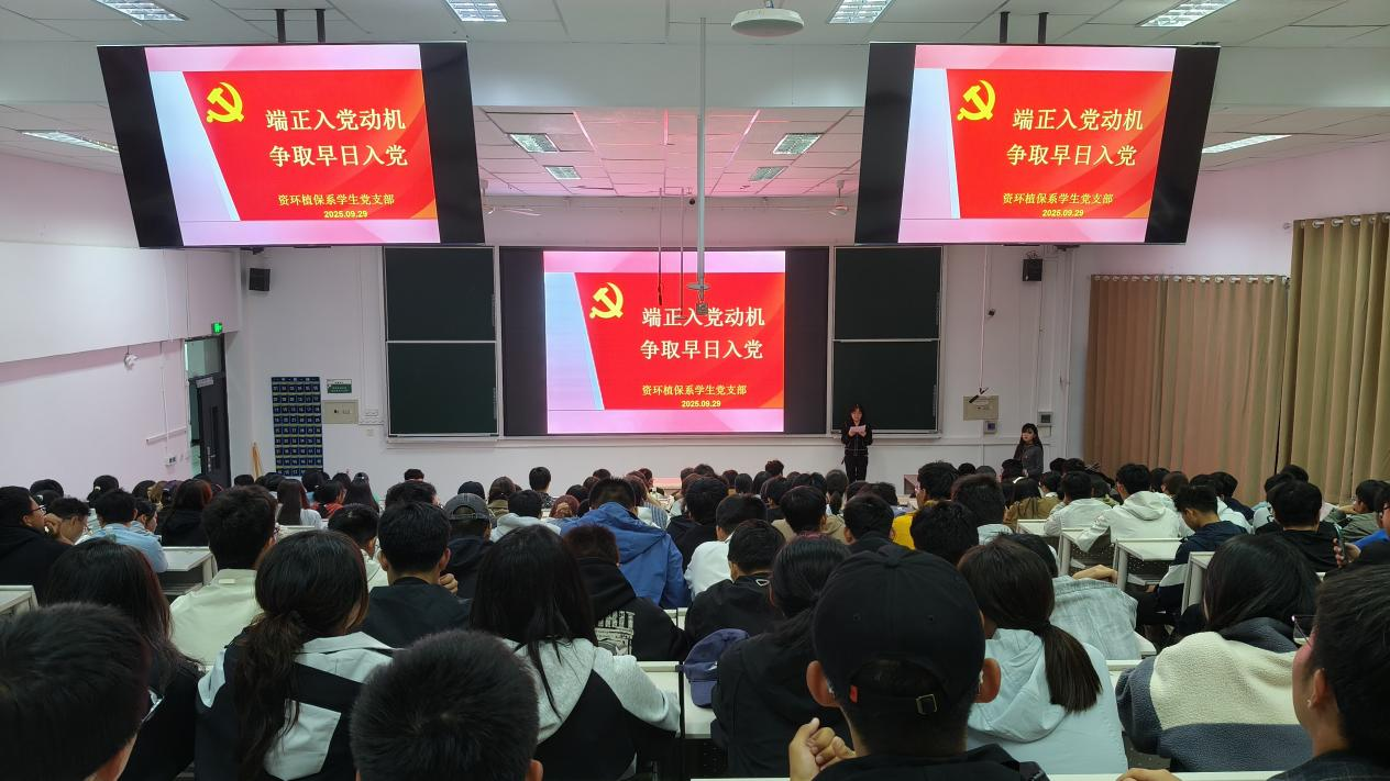 为引导新生坚定理想信念、厚植爱党爱国情怀、树立正确的入党动机,9月29日晚,资环植保系员工党支部于逸夫楼106、阶教6、阶教9分设三个会场开展“端正入党动机,争取早日入党”新生入党知识培训。资环植保系员工党支部全体党员、入党积极分子及资环植保系新生参与此次培训。