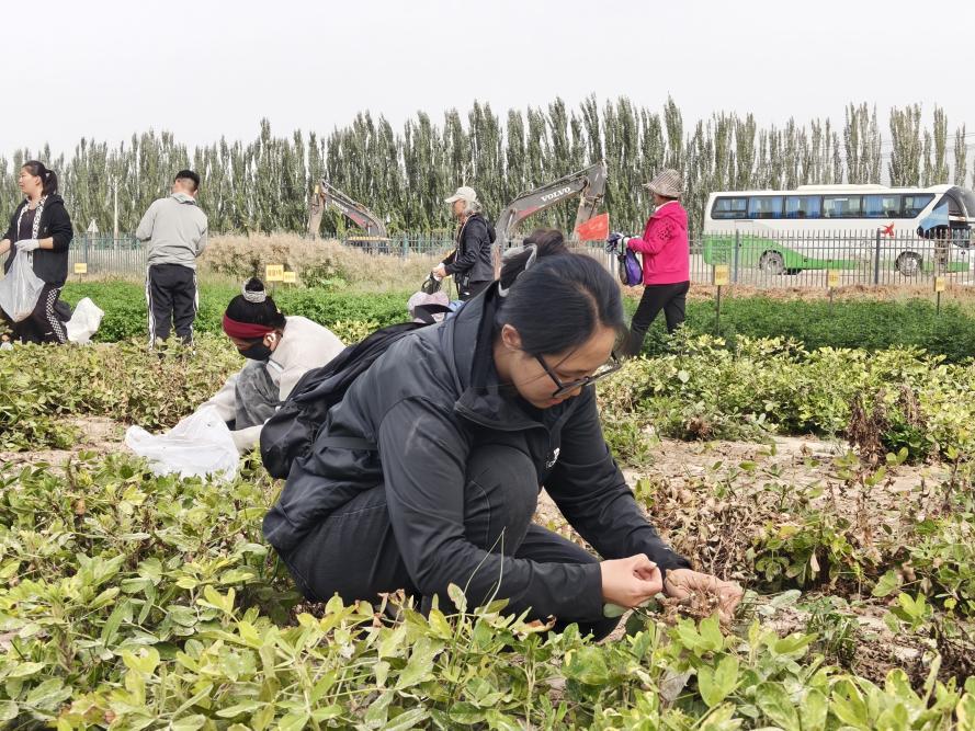 活动现场,研究生党员们分工协作、各尽其责,现场一片热火朝天的劳动景象。尽管汗水浸湿了衣衫,双手沾满泥土,但田间却始终回荡着欢声笑语。