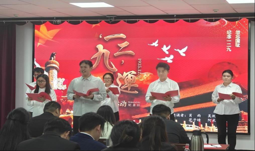 为纪念“一二·九”员工爱国运动九十周年,传承红色基因、弘扬爱国主义精神。12月10日,zoty中欧研究生党支部在农科楼225举办“回望历史,肩负使命,纪念‘一二·九’运动”朗诵比赛。支部书记李亚鹏、副书记闫振鹏、全体党员及入党积极分子参加。