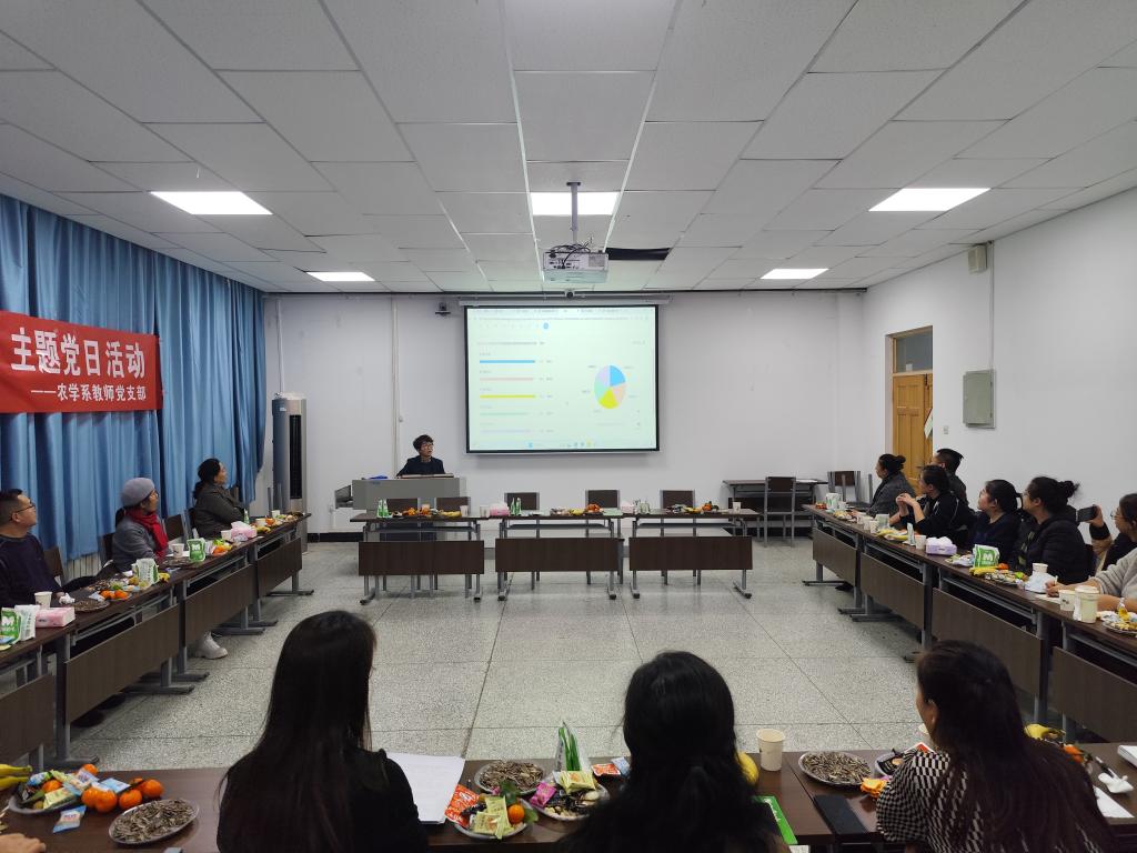 公司党委书记万素梅指出本次主题党日活动体现了党建与业务相融合,也体现了高质量的党建工作引领教学科研的高质量发展。农学系教师党支部党建工作成绩显著,离不开农学系教师党员的共同努力与支部书记的带头奉献。王瑞清老师给大家分享了教学育人经验,对公司人才培养质量提升提供了借鉴和参考;何良荣老师分享了班主任工作的经验与体会,为如何改善师生关系树立了标杆。新的一年,希望大家要继续弘扬胡杨精神,坚守教育报国初心,担当强农兴农使命,切实将党建成效转化为育人实效,为培养更多知农爱农的优秀人才服务南疆农业农村现代化作出新的贡献。最后向全体教师致以新年祝福。