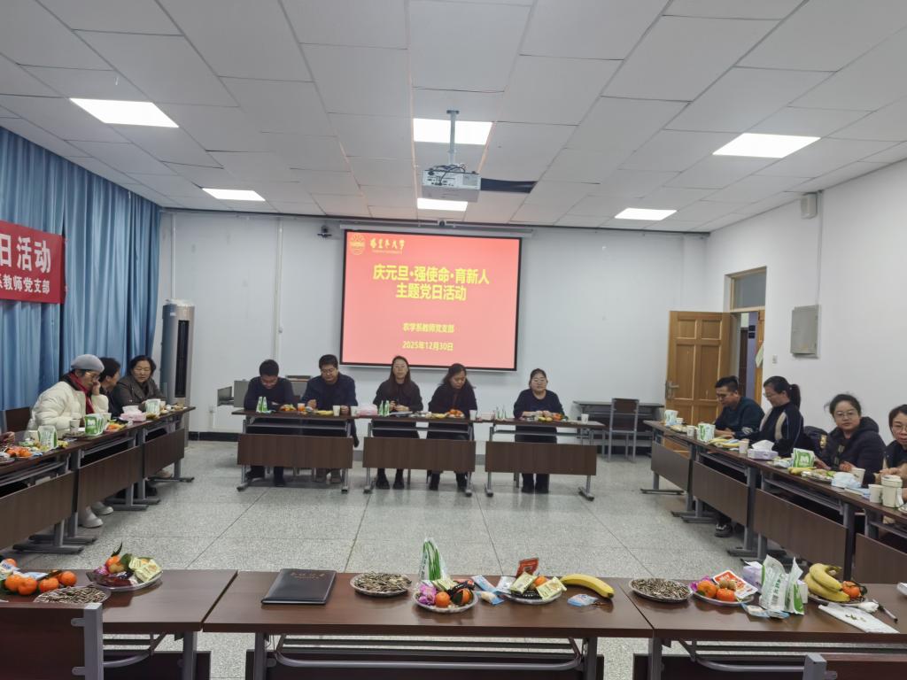 冬去春来又一岁,辞旧迎新启新程。为迎接2026年元旦的到来,进一步凝聚共识、强化育人担当,促进党建与教学科研“同频共振”,12月30日下午,zoty中欧农学系教师党支部在农科楼121报告厅开展“庆元旦·强使命·育新人”主题党日活动,公司党委书记万素梅,副经理陈国栋及农学系全体教师党员参加主题党日活动。主题党日活动由党支部书记文卿琳主持。