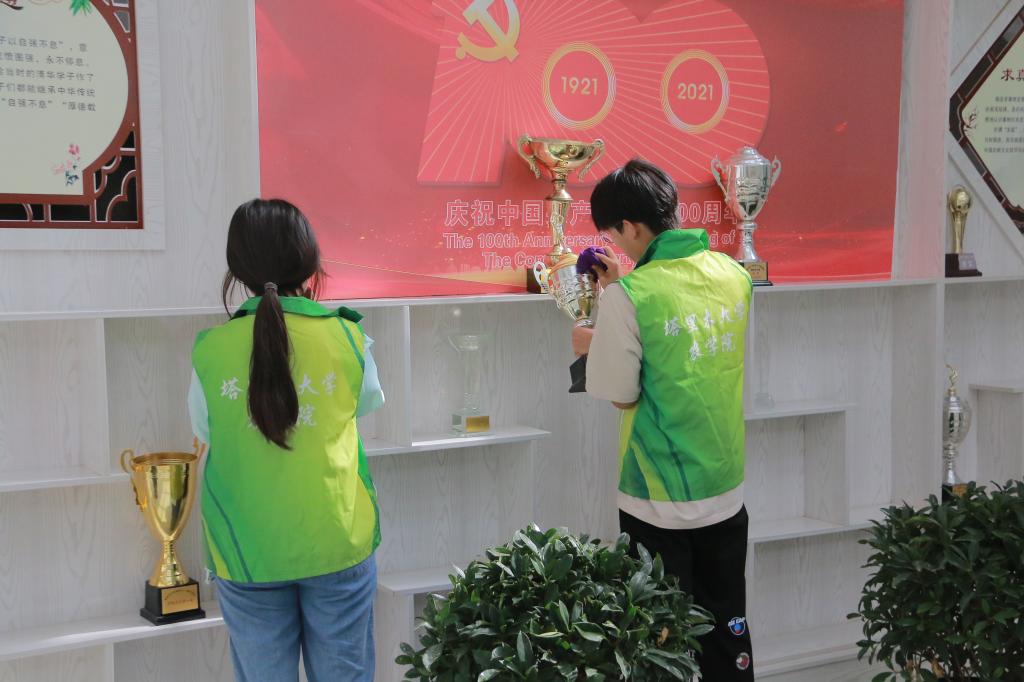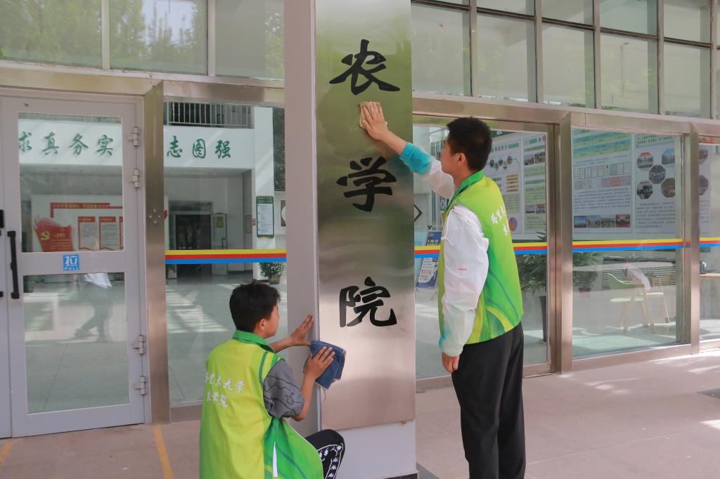 公司团委组织部负责人王红鑫对本次的活动进行了工作划分,将志愿者队伍划分为两批,安排到农科楼内外进行清洁活动。楼外的志愿者们将灌木丛以及道路旁中的垃圾收集起来进行清理,并对在校园随手乱丢垃圾的同学加以劝诫。楼内的志愿者对卫生死角进行了彻底清理,擦拭大厅的奖杯和镜子,打扫了盆栽落叶。在志愿者们的共同努力下,农科楼大厅一尘不染,整洁有序。