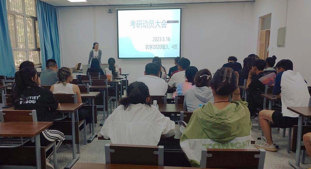 为了激发2024届毕业生的学习热情和考研激情,解决考研疑惑,2023年5月16日农学2020级3班、4班在农科楼121教室举行了“‘研’阵以待,梦想启航”主题考研动员大会,本次大会由班主任文卿琳老师主持。