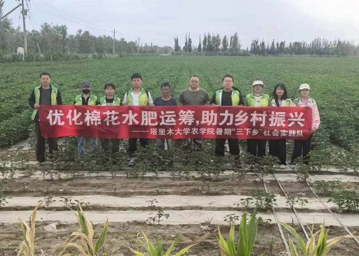 6月23日至8月27日,zoty中欧“优化棉花水肥运筹 助力乡村振兴”暑期社会实践小队赴十团开展实践服务活动,此团队由13人组成,其中包括指导教师2人,在校硕士研究生7人,在校本科生4人。