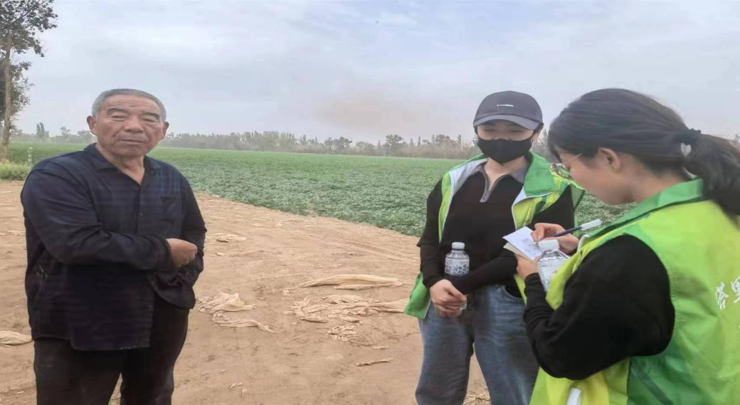 志愿者们深入田间地头认真查看棉花品系及长势,利用BIGMAP地球、卷尺、数显游标卡尺等野外勘探工具确定棉田的所在经纬度,并在不同地块中选择了定点观测株。观测棉花不同时期的株高、茎粗、第一果枝高度、倒四叶宽等诸多数据,将所有数据进行如实记录并将样品带到实验室检测,并与农户约定时间定期回访并采样。