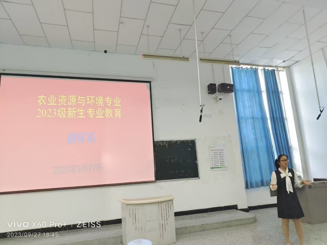 9月27日,资环系在综合楼阶教4召开了2023级农业资源与环境专业新生见面会,启动了专业教育活动。资环系副主任张翠丽老师主持会议,资环系主任伍维模及部分教师、2023级4个新生班同学参加了会议。