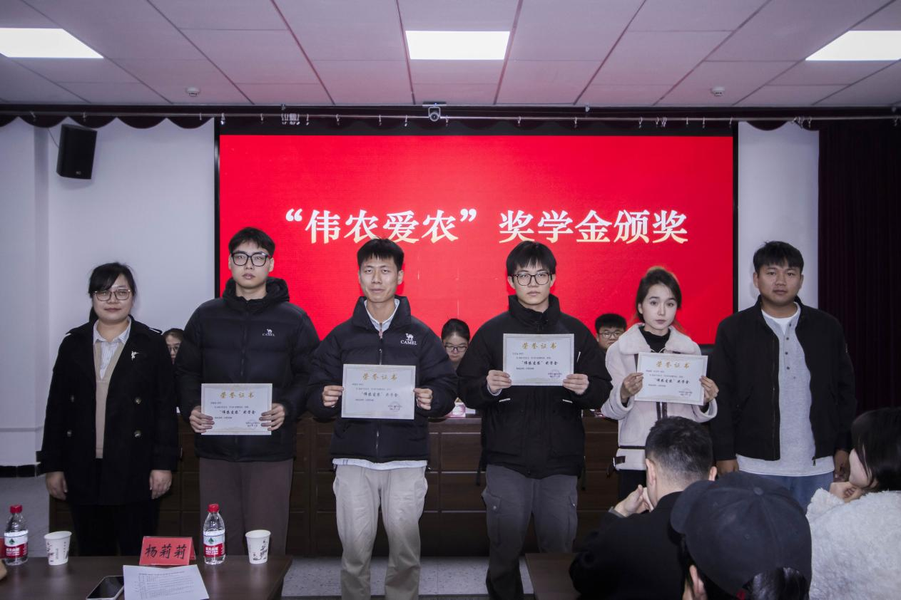 在颁奖环节中,共有16名学子分获“茁秀英才”、“禾润绿农”、“丰收优才”、“伟农爱农”四项企业奖学金。他们不仅在学业上勤奋刻苦,更在实习与就业实践中展现出扎实的专业能力和良好的职业素养,成为农科学子中的先进代表。