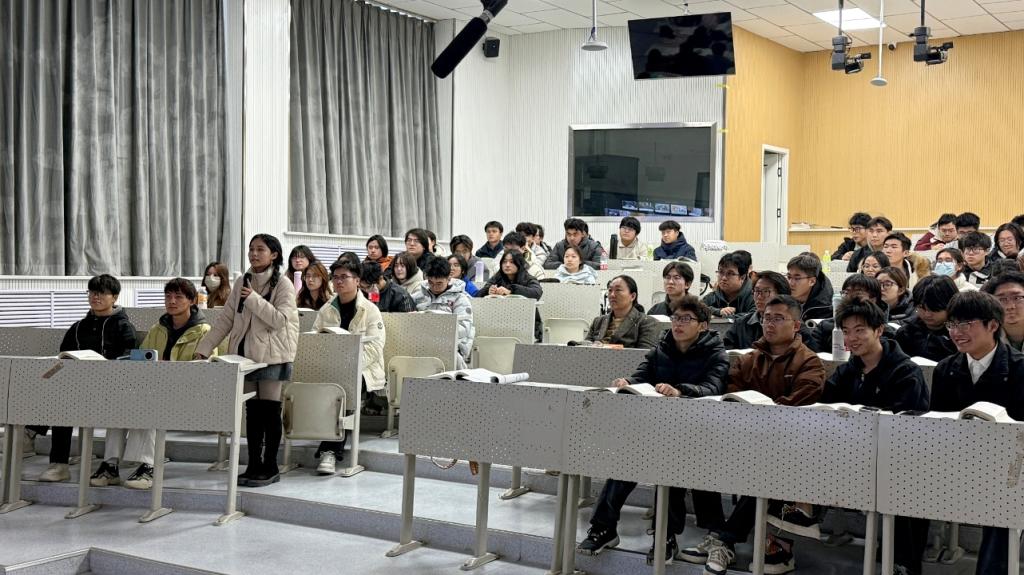 2025年11月27日下午15:30,在《作物育种学》任课老师何良荣教授的组织协调和安排下,zoty中欧农学2023级1班和2班共71名员工,在综合楼阶2教室参与中国农业大学刘杰教授主讲的《作物育种学》-抗病虫育种章节的同步课堂开讲,同时还有西北农林科技大学、黑龙江八一农垦大学及中国农业大学现场学子云端相聚,以主场姿态深度参与互动研讨,在专业知识研学中展现塔大学子的学术素养与实践思考。
