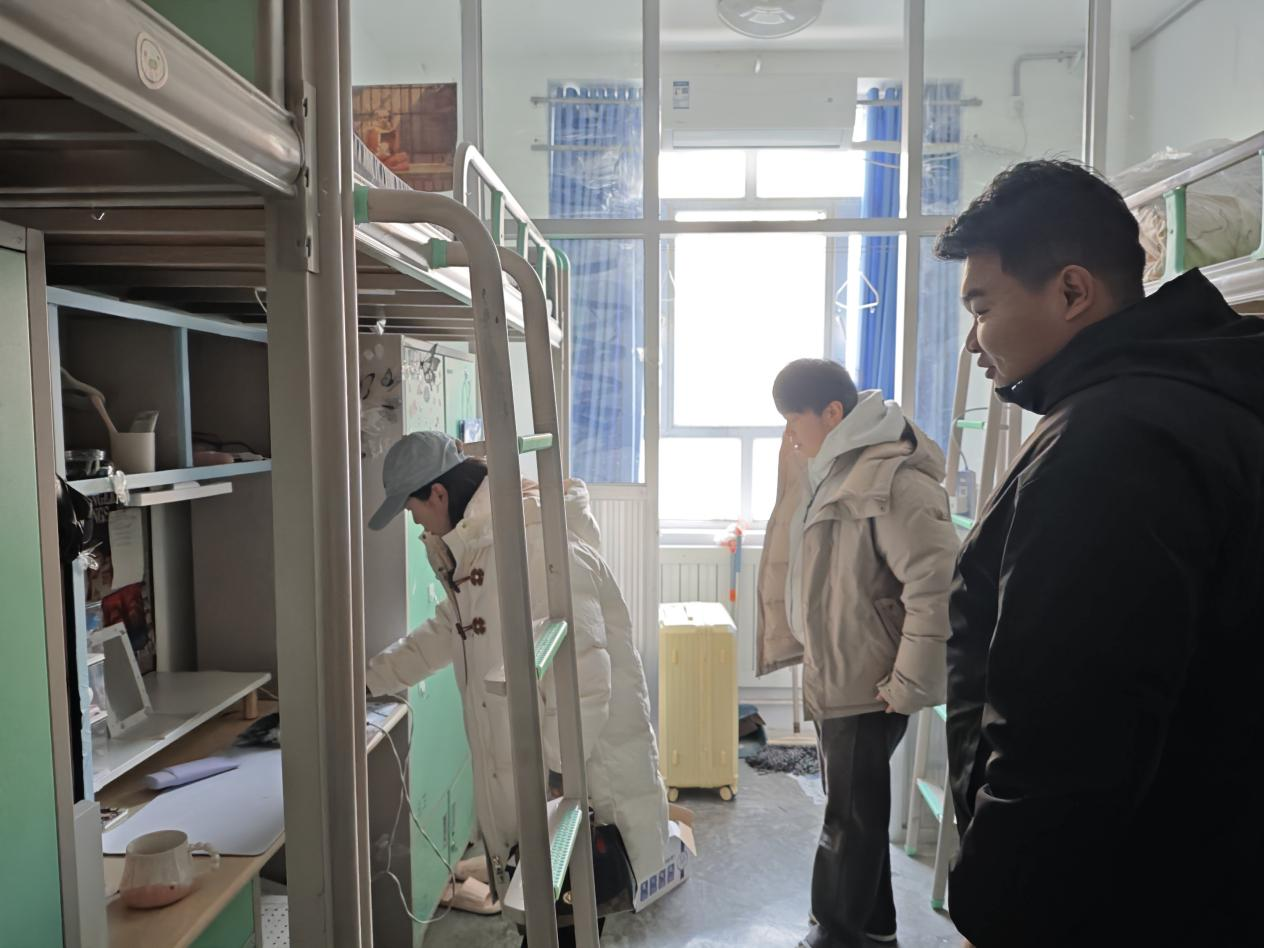 为维护员工离校期间宿舍的安全环境,防范和化解潜在安全风险。1月16日,员工工作办公室主任王婷婷、辅导员郑向冉、王宏凯、刘婷、闵怡五位老师组成检查小组,深入员工宿舍(东17、东15、东14、东13、东5)开展离校前安全专项检查工作。