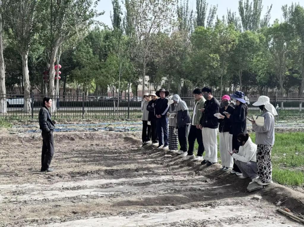 4月28日,王冀川、乔航、闫宁宁三位专业教师带领农学 2022 级 4 班全体员工在农学试验站开展了一场围绕棉花播种至出苗期的专项农学实习活动。